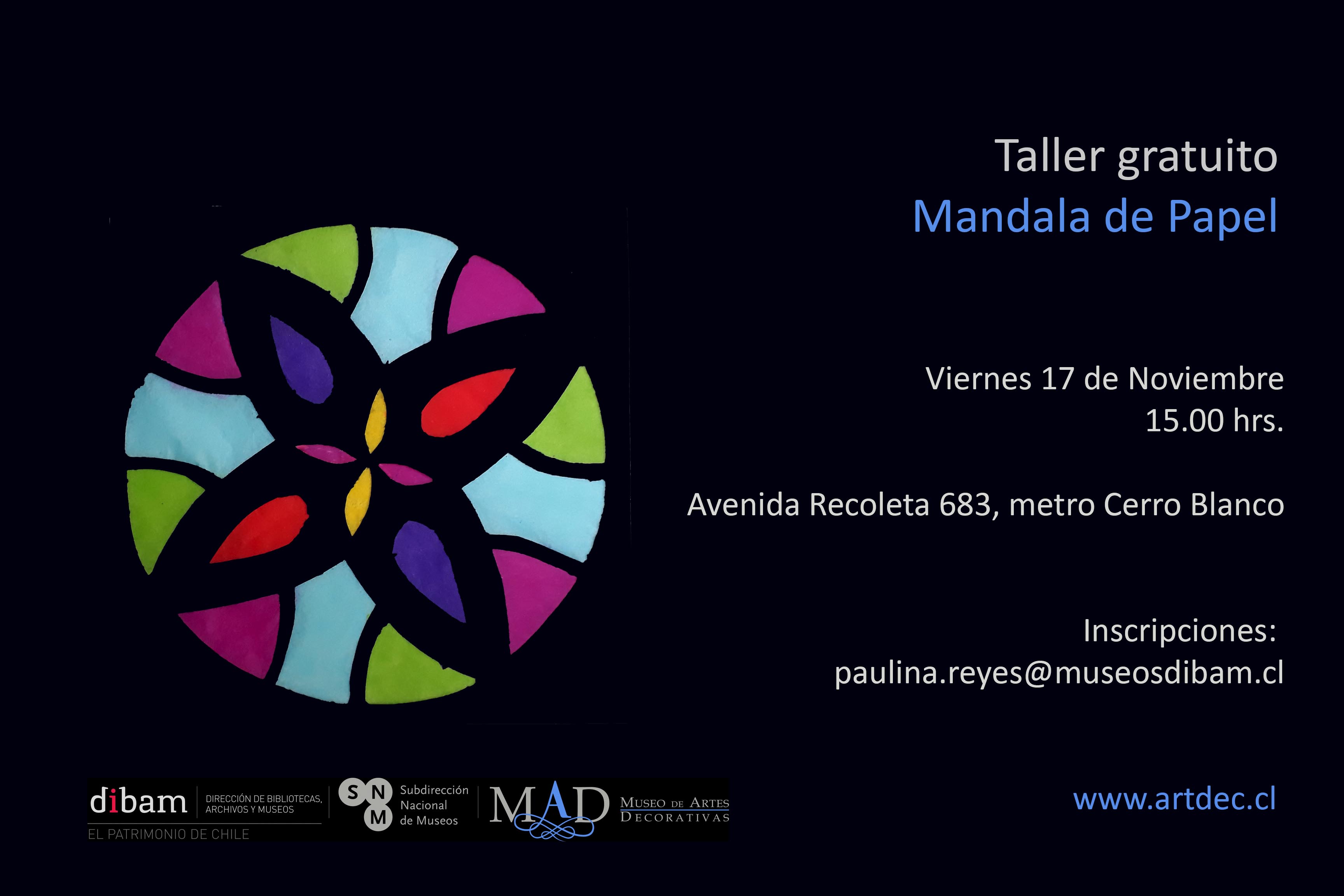 El próximo viernes 17 de Noviembre a las 15.00 hrs. realizaremos un taller gratuito para confeccionar mandalas de papel inspirados en la colección de cristales y en la exposiciónRelieve y transparencia: 100 años del vidrio.
