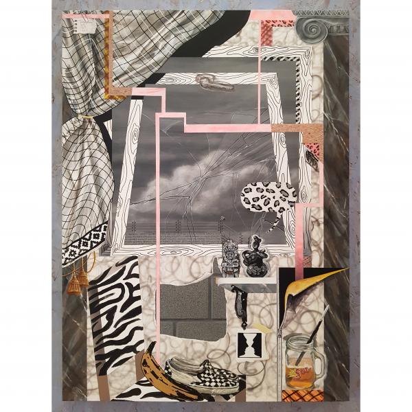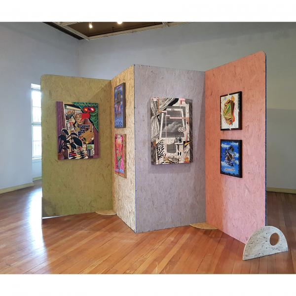 La exposición se compone fundamentalmente de cuatro conjuntos de trabajos. Las obras oscilan entre lo bidimensional y lo tridimensional e incluyen sutilmente el movimiento, de quien circula por la sala y, en algunos casos, de la brisa que un/a espectador deja a su paso. Cabe mencionar Construcciones (2020), unas esculturas de palos de helado pintados, pegados con silicona, Ofrendas (2021), otros volúmenes pero hechos de palos de fósforo (y diferentes materiales), también pintados y pegados con silicona, Máscaras (2020-2021), pinturas realizadas sobre lienzo (colgadas junto a otros cuadros del artista), y la serie que da nombre a la exhibición, constituida por una suerte de ensamblajes pictóricos.